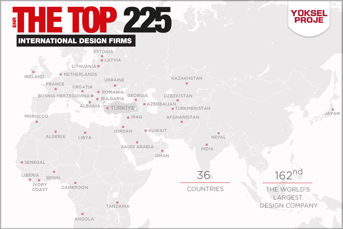 Dünyanın en büyük 225 uluslararası tasarım firmasının belirlendiği ENR 2023 listesi açıklandı. Yüksel Proje geçtiğimiz 10 sene olduğu gibi bu yıl da listede yer aldı.